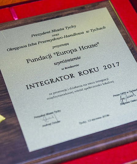 Za promocję i działania na na rzecz integracji międzynarodowej wśród społeczności lokalnej Europa House otrzymała wyróżnienie Integratora Roku 2017 podczas Spotkania Przedsiębiorców organizowanego przez Okręgową Izbę Przemysłowo-Handlową oraz Prezydenta Miasta Tychy.